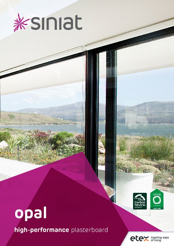 Siniat Opal brochure. Siniat’s opal plasterboard is a high-performance board suitable for walls
